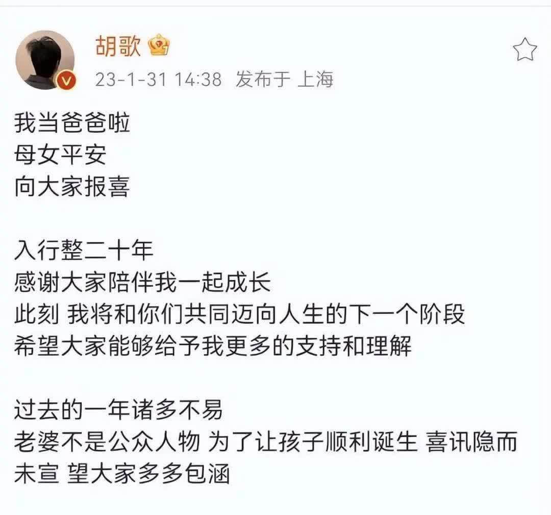 不过,和他一路飞升的演艺事业相比,或许很多的粉丝们更为关心胡歌的家庭生活,曾经经历过车祸,也看得出胡歌很珍惜家庭,直到了前几年,年过40岁的胡歌才公布了自己已婚并且有了孩子的喜讯。