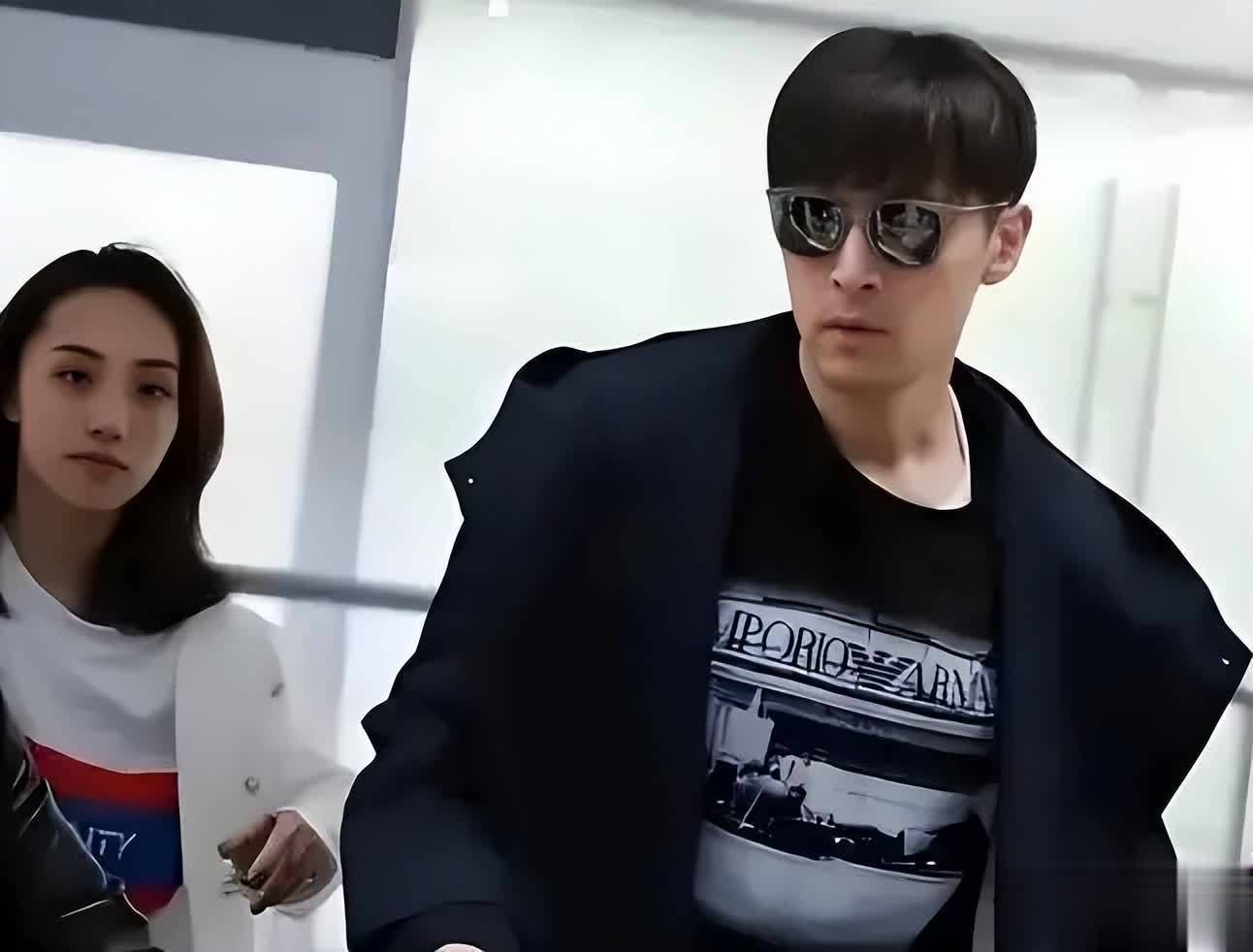 胡歌和妻子走在一起,胡歌还是一如既往的干净利落,他身穿一套黑色的运动套装,发型也是很酷的。