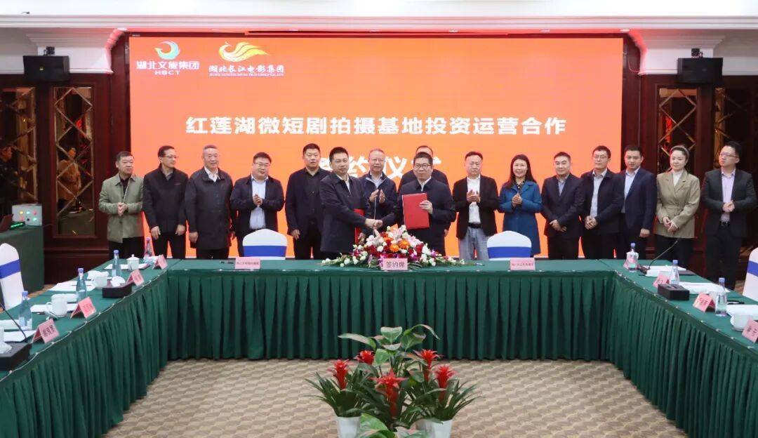 湖北日报客户端讯(通讯员刘峥)11月3日,湖北文旅鄂州集团与湖北长江电影集团在红莲湖酒店举行微短剧拍摄基地签约仪式。湖北文旅集团党委委员、副总经理罗钦,鄂州市华容区委常委、红莲湖旅游度假区党工委书记、管委会主任李明杰,湖北长江电影集团党委书记、董事长朱雨龙,党委副书记、总经理谢云,湖北文旅鄂州集团党委书记、董事长谢良宽出席仪式并见证签约。
